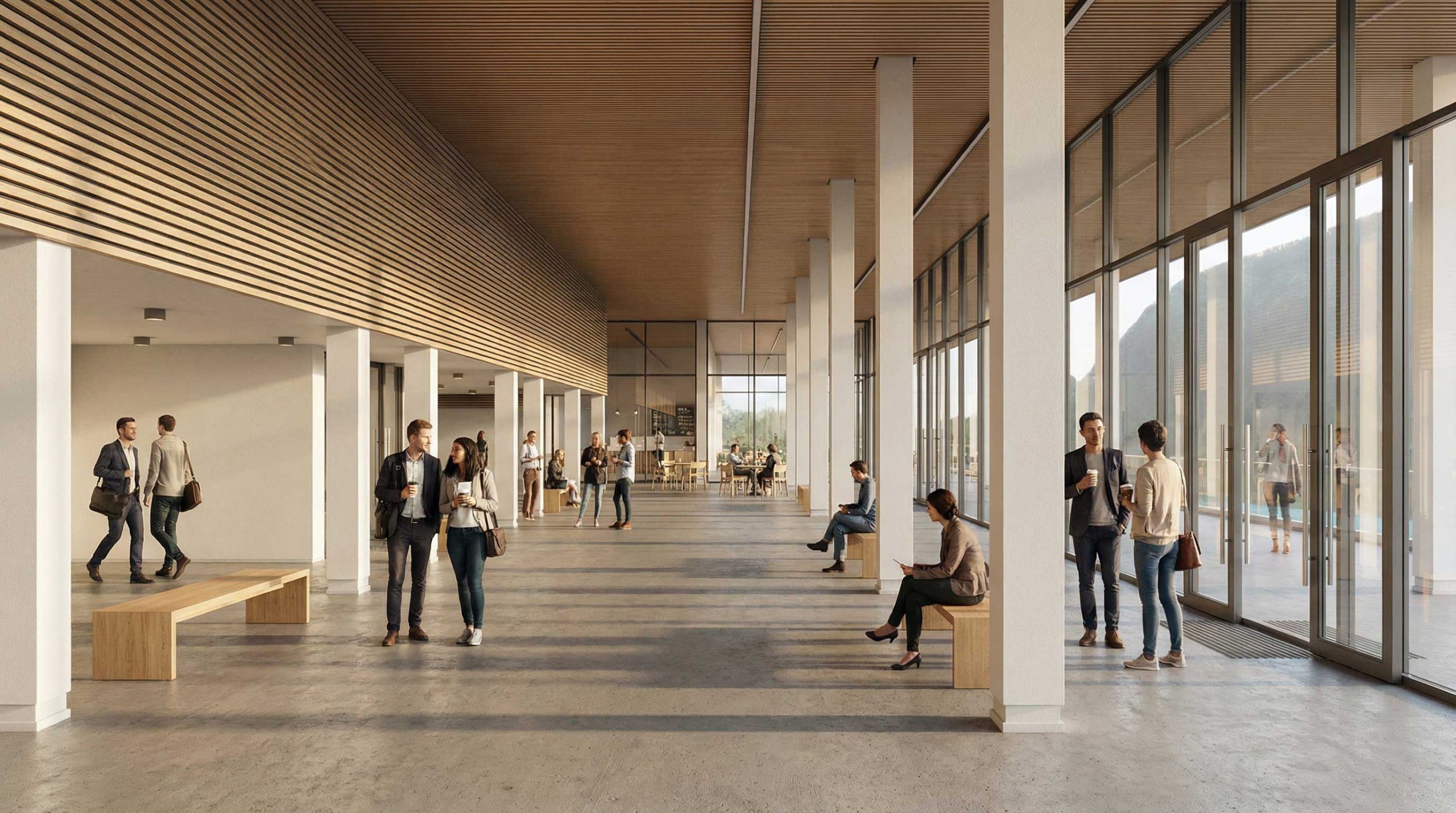 - Efficient land use by submerging service and parking functions.