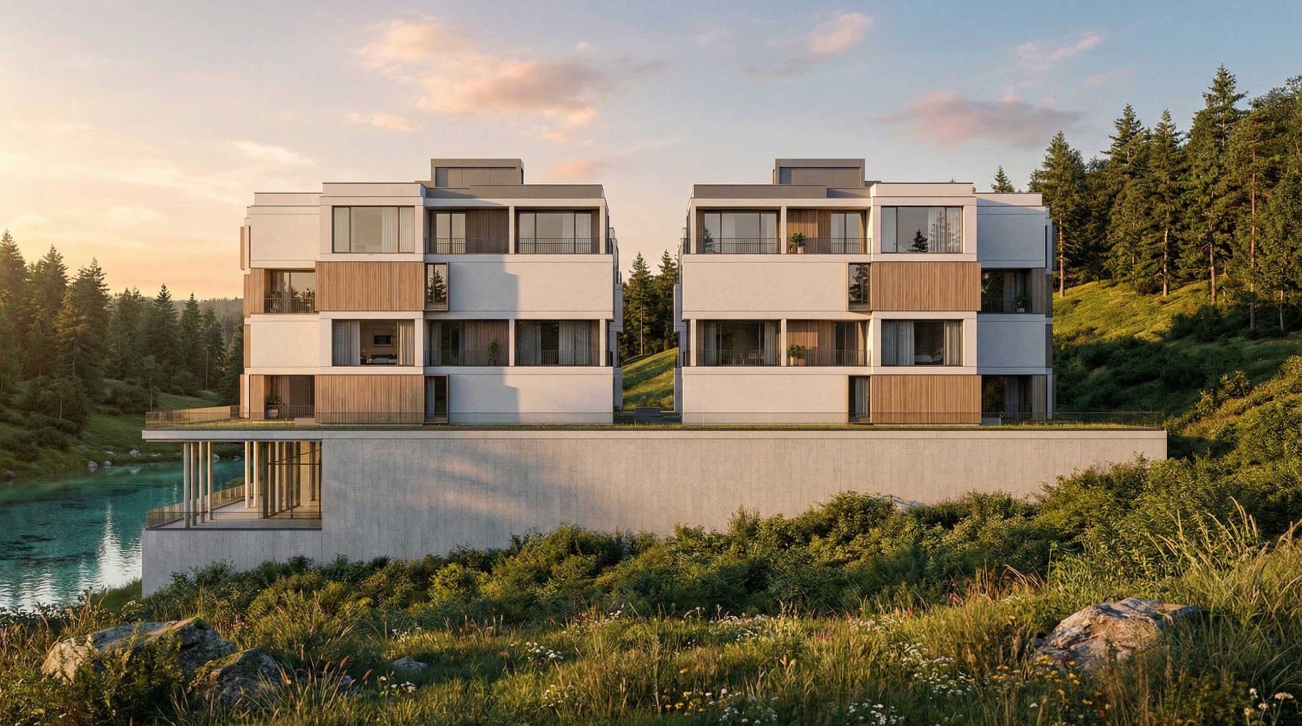 Located in the heart of the Black Forest, in Neustadt-Titisee, this one-hectare site carries a deep industrial memory. Once home to a bolt and nut factory, the site has been completely cleared of its dilapidated structures to make way for a new chapter. Positioned dramatically on a mountain slope and nestled between the main access road and the river, the project aims to transform this brownfield site into a vibrant, modern residential landmark.