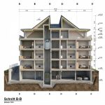 The property, measuring 1,762 m², was created by merging two smaller urban plots. The building has a gross floor area of 464.82 m² and consists of three floors with 12 apartments (four per floor) and an underground parking garage providing two parking spaces for every two apartments.